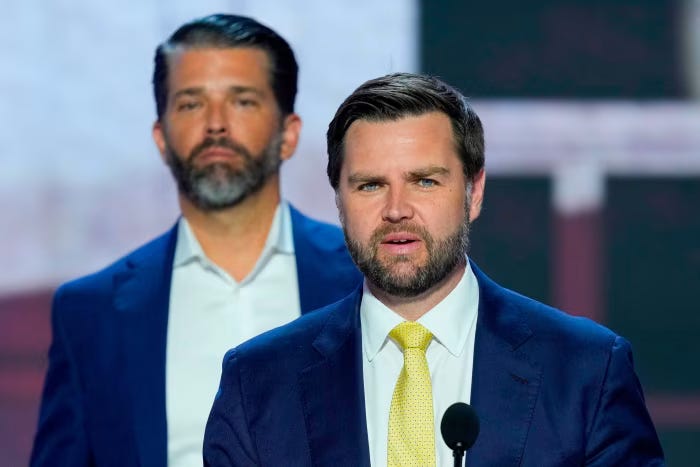 Along with JD Vance come two people who were Vance’s chief advocates inside Trumpworld: Donald Trump Jr. (age 46) and Elon Musk (age 53).